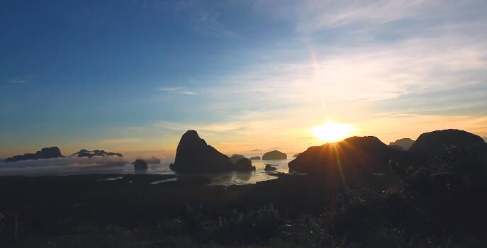 Samet Nangshe观景点位于攀牙府达瓜通县,是位于攀牙湾礁石山中的一个观景点,可以在晚上看到满天闪烁的繁星。