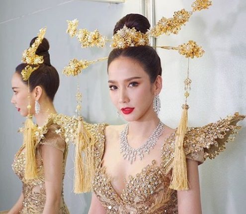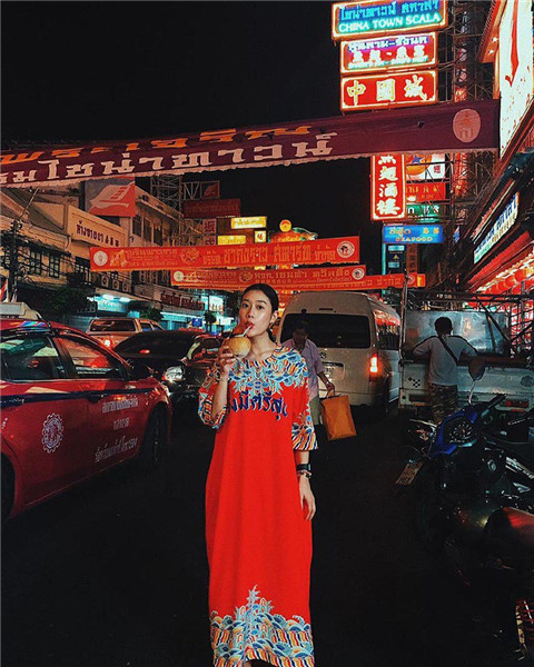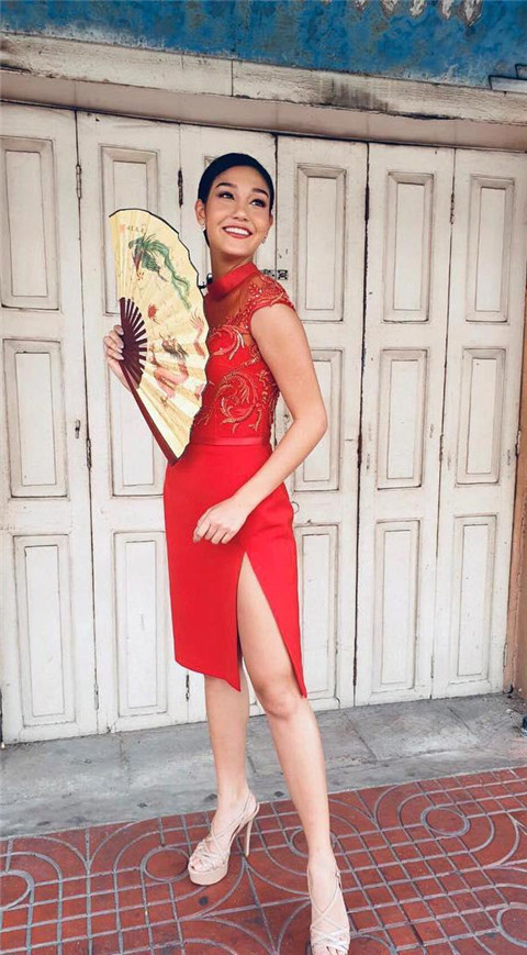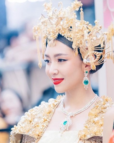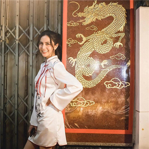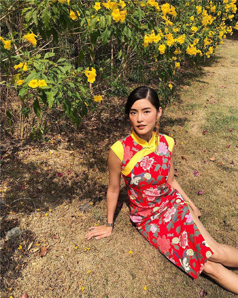 Mint Chalida来啦,她穿着中式服装像一个中国小阿妹,但是pose倒是比较性感。