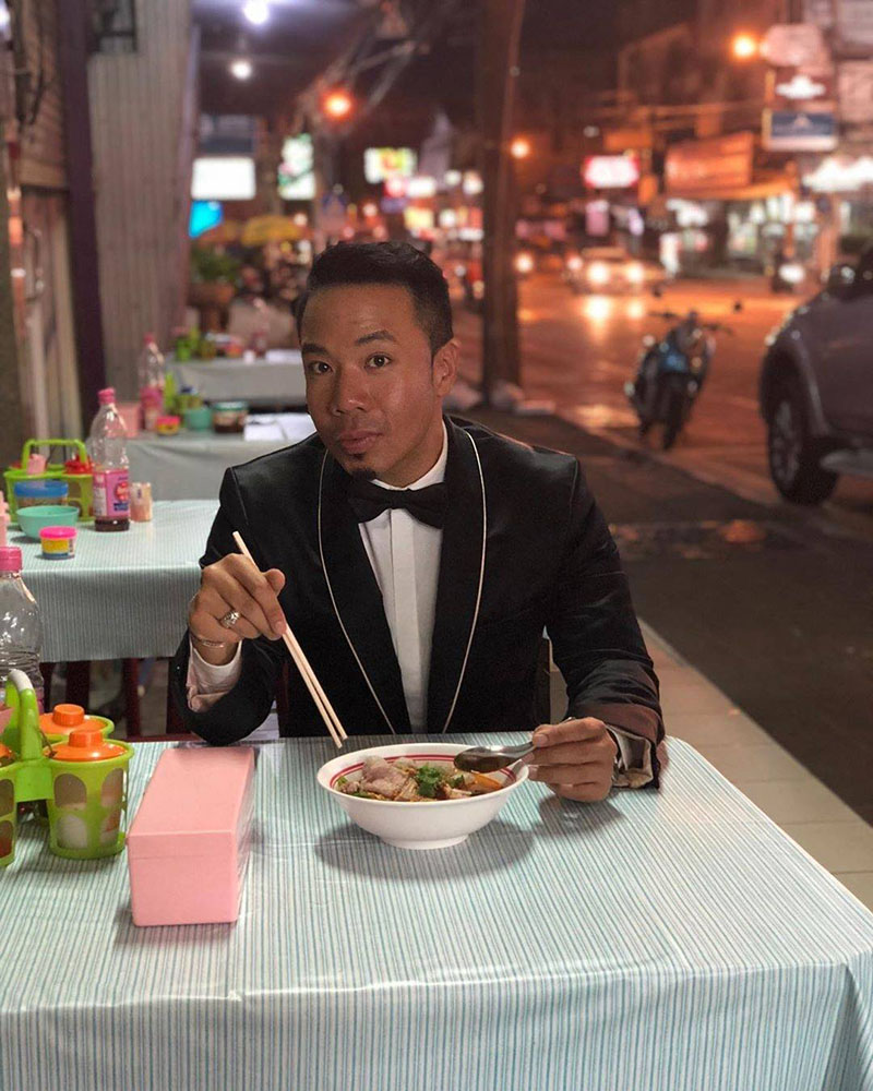 จัดชุดทักซิโด้ไปนั่งโซ้ยบะหมี่เกี๊ยวริมถนนเป็นอะไรที่ทำบ่อยจริงๆ สำหรับ ดีเจภูมิ สายลุยคนนี้ เพราะไม่ใช่ครั้งแรกที่เราเห็นแต่บอกเลยว่าร้านส้มตำริมทาง คือร้านประจำของดีเจภูมิเลยทีเดียว กินง่ายอยู่ง่ายสบายกระเป๋ายกให้เค้าเลยจร้า ดีเจภูมิ