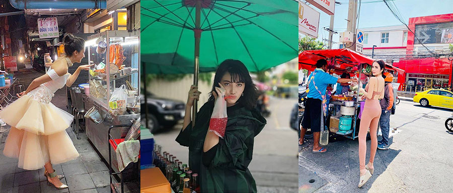 华丽的服饰跟路边小摊往往八竿子打不着,但是有几位身着华丽服饰的泰国明星却热衷于买路边摊来吃。是摆拍还是接地气?一起来看看吧~