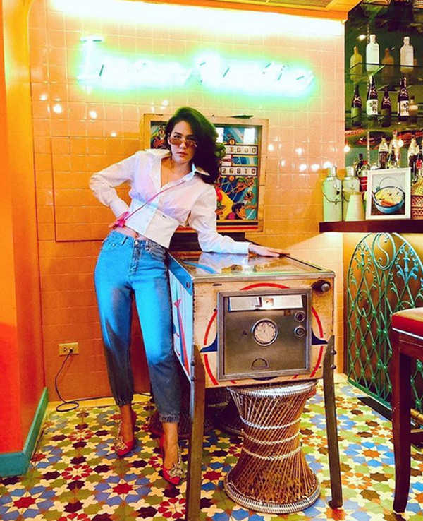 继续火力全开!这次她又拿出了经常在社交媒体上 po 照片时用的超大号发带,这个非常酷的发带并不是什么进口品牌,而是她好朋友 Ploy Chawaphorn 自己的品牌,她让这个单品变得大热,在泰国卖的非常好。