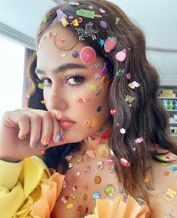 新冠疫情把我们都关在了家里,但是 Chompoo 仍然给大家贡献出了很甜美的妆容,在脸上和头发上贴满了可爱的贴纸,不用注射什么玻尿酸也能让你看起来年轻很多,很多美妆博主都从这里获得了灵感,这些可爱的贴纸都差点卖断货了!