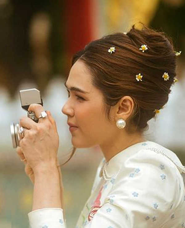 ลุคนี้เห็นแล้วกรี๊ดมาก เพราะแม่ชมมาด้วยเมคอัพโทนสีพีชสวยหวาน เพิ่มความละมุนด้วยการประดับดอกเก๊กฮวยและอัญชันที่เส้นผมจนเต็มศีรษะ ให้ความรู้สึกเหมือนเทพธิดาดอกไม้ อีกลุคคือทรงผมตอนไปทำบุญที่วัด โดยเธอมาในชุดเรียบหรู แซมดอกไม้เล็ก ๆ ไว้บนทรงผมที่เกล้าไว้อย่างไม่ตั้งใจ ทำเอาดอกไม้ราคาพุ่ง เพราะลูกสาวพากันติดตามแม่ชมไปหมดแล้ว