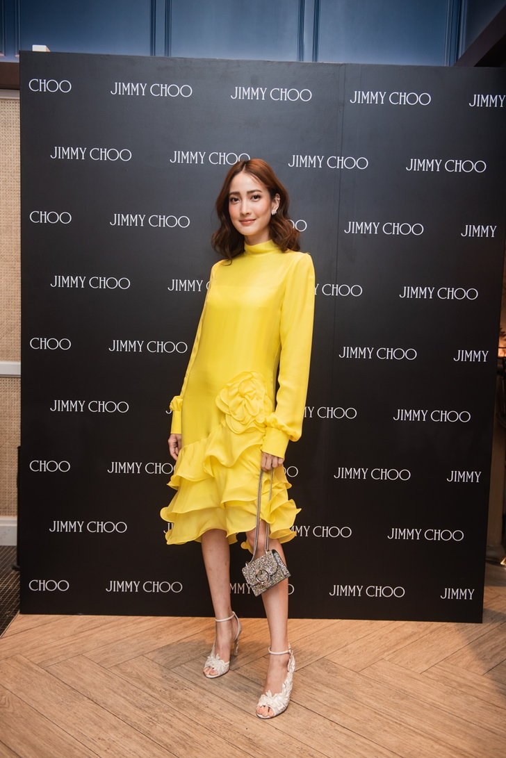 ใครที่ชอบลุคสดใส น่ารักแต่ก็อยากหรูหราด้วย ต้องลุคนี้ของ แต้ว - ณฐพร เตมีรักษ์ โดยสาวแต้วมาในชุดเดรสแขนยาว คอเต่า สี Bumblebee yellow เพิ่มความสง่างามให้ลุคด้วยรองเท้า Jimmy Choo รุ่น LUCELE สี Ballet Pink ประดับลูกไม้สุดหรู คอมพลีทลุคด้วยกระเป๋าสะพายใบเล็ก รุ่น MINI PARIS ส่องประกายกลิตเตอร์เมื่อต้องแสงไฟ ช่วยดึงความเป็นสาวขี้เล่นในตัวออกมาได้อย่างน่าสนใจ