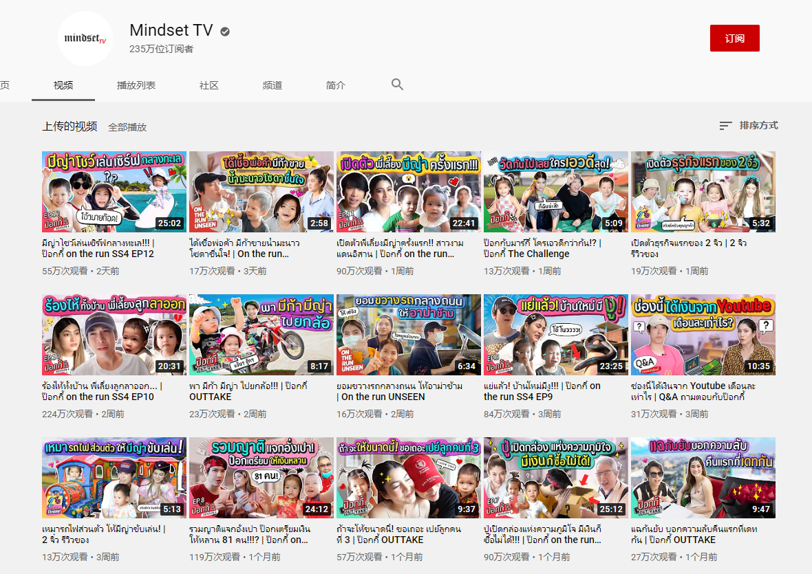 有人问,做 YouTube 视频赚很多吗。但其实我们从 YouTube 获得的收入并不多,因为平台会扣除每次视频发布的展示费用,这还有一套算法。你得到多少钱是取决于视频一年以来的观看人数,以及广告时间的订阅量,那些广告就和一般电视里放的广告差不多。平均一个观看次数相当于0.012泰铢,如果想要挣得百万,就必须要亿次的观看量。所以我的收入基本是来自我的赞助商。