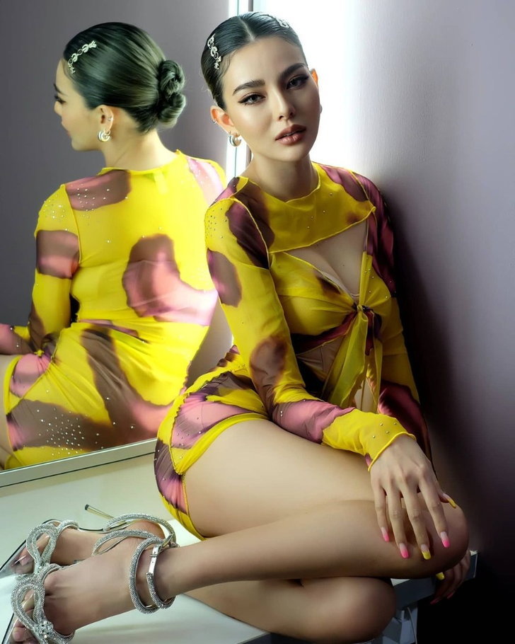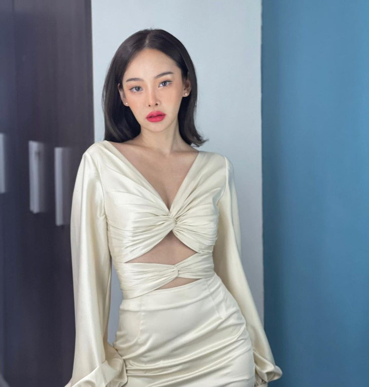 Due Arisara的这套服装是在《Rong Kham Kamphaeng》节目上表演时穿的,简直太惹火了!除了非常纯净的声音之外,这套紧身短裙还凸显了她火辣的时尚风格,尽管是一条长袖裙子,但是每个角落都非常性感,包括胸部和腹部的设计。