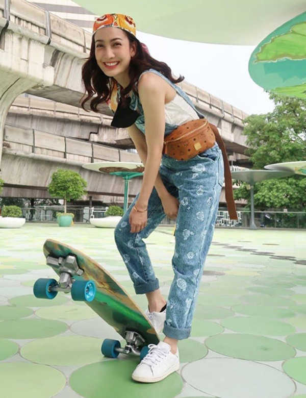 ใช้ผ้าโพกหัวเก็บผมด้านหน้าไปเล่นเซิร์ฟสเกตแบบเท่ ๆ