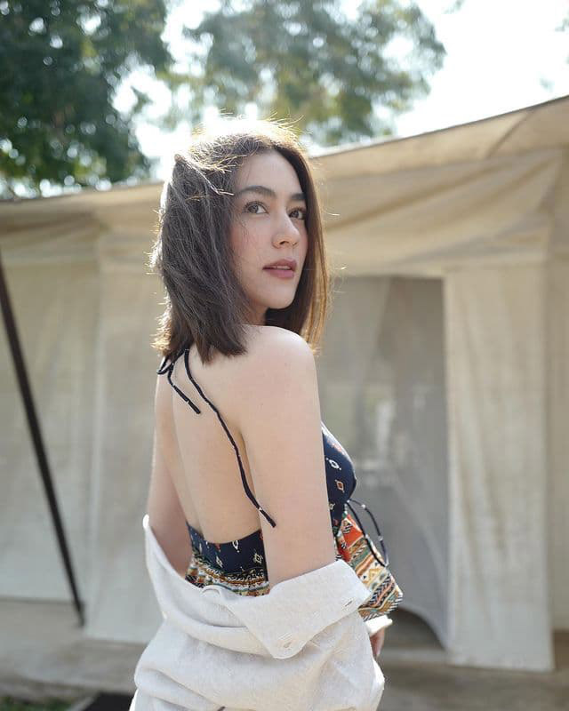 สาว ณิชา ใส่เสื้อโชว์หลังผูกโบ ทั้งน่ารักและแอบเซ็กซี่ไปในตัว