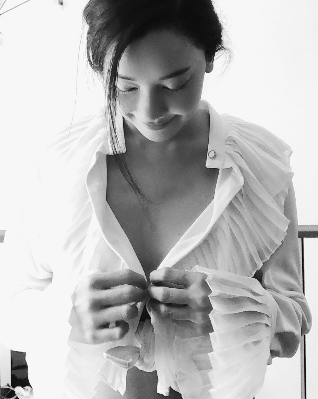 โดย นุ่น วรนุช ได้เผยภาพตัวเองที่สวมใส่เสื้อแขนยาวสีขาวบริสุทธิ์ แต่เพิ่มกิมมิกให้น่าค้นหาด้วยการแหวกให้เห็นเนินอกสุดเซ็กซี่ พร้อมมอบรอยยิ้มบางๆ แต่ช่างสะกดจิตเสียเหลือเกิน