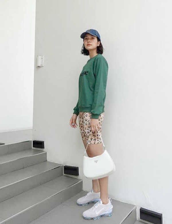 Bike Short x Sweater จับคู่กับสเวตเตอร์ ได้ลุคสาวสปอร์ต แถมฟีลเหมือนเดินเล่นอยู่นิวยอร์ก
