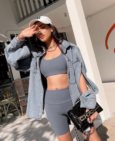 Bike Shorts x Jacket ลองมาแมตช์กับเสื้อแจ็กเก็ตยีน โชว์เอวนิด ๆ ก็แอบเซ็กซี่แบบสายฝอ