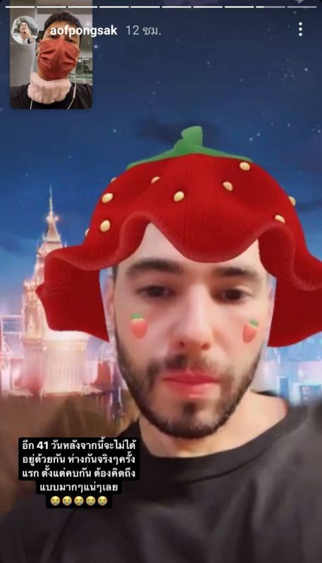最近“Aof”突然表示自己有一点心碎,原来是他不得不与男友分开一个多月,而且还是跨国度分别,于是他在自己的IG Story传了朋友来机场送别的小视频,及亲亲男友“Justin”的帅照,依依不舍抒情起来...“要分开41天,这是自打交往以来第一次远隔重洋,人家一定会hin想你的嘤嘤嘤”。