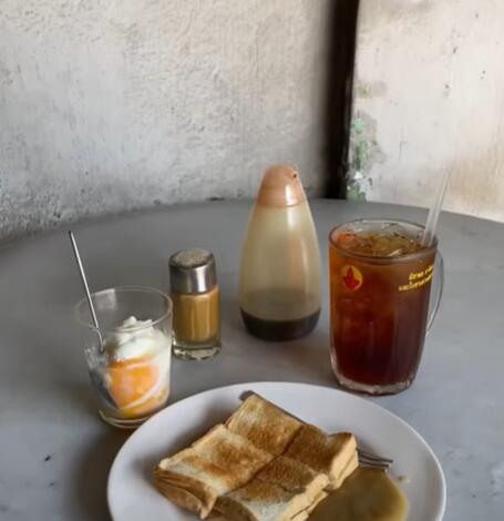 位于Khlong Thom的这家老咖啡店,同时也在 Charoenkrung 12巷对面的人行道旁。这家店的亮点是顾客可以坐在摩托车座椅上喝咖啡,如果坐的不舒服的话,可以选择具有古典气息的路边桌就坐。这家咖啡店除了提供传统的咖啡和饮品:如冰茶、可可、粉红冻奶、蔬菜绿汁等,还有半熟蛋和香喷喷的炭烤吐司,顾客可以选择焦糖黄油、牛奶黄油、果酱黄油和巧克力黄油味道的。