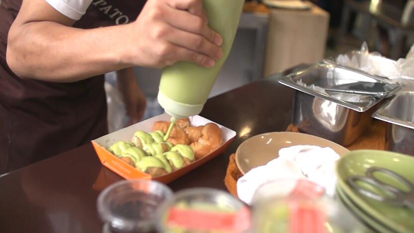位于耀华力路一带又靠近Chaloem Buri十字路口的这家老式咖啡店,已经开业100多年了。这家咖啡店是一栋双层楼的老建筑,一楼由中国茶馆风格彩砖装饰着,二楼设有空调,装修成现代吧台风格。除了茶、咖啡等各种饮料外,还有各种馅料的爆浆面包,比如有巧克力榛子酱、老式蛋酱、香兰酱、榴莲奶油等口味。除了这些,这家咖啡店还有鸡蛋面包、煎蛋、早餐套餐和点心,晚上还会提供热腾腾的麻辣火锅。