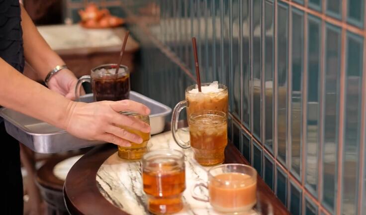 据说这家咖啡店已有近 70 年的历史,目前是由第四代传承人管理经营,在曼谷开设了多家分店。除了著名的咖啡菜单,比如:cofete(是一款中度烘焙,有着蔗糖香味的咖啡),chafe(将咖啡与锡兰茶混合,但味道还是咖啡味)等等。还有一个受欢迎的套餐:鸡蛋炒全家福套餐,撒上一些香料来增添香味。这份套餐里面含芝士和培根,吃的时候搭配着夹心面包,吃完保准你满意。除了这些,还有鸡蛋焗排骨饭、绿咖喱烤鸡肉和许多其他美食。