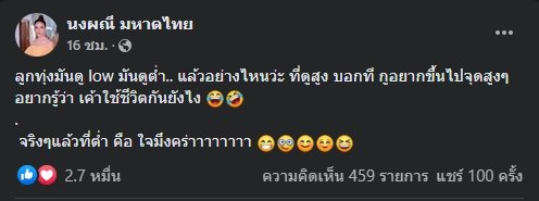 โดยล่าสุด จ๊ะ นงผณี ได้โพสต์ข้อความลงในเฟซบุ๊กข้อความว่า "ลูกทุ่งมันดู low มันดูต่ำ..แล้วอย่างไหนว่ะ ที่ดูสูง บอกที กูอยากขึ้นไปจุดสูงๆ อยากรู้ว่า เค้าใช้ชีวิตกันยังไง. จริงๆแล้วที่ต่ำ คือ ใจมึงคร่าาาาาาาา"