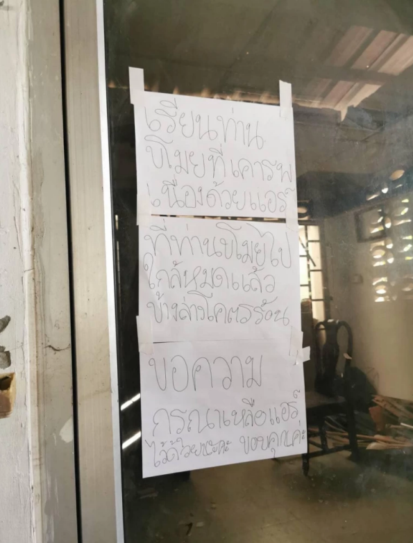 当遇到“小偷”一而再再而三地前来偷东西时,这种情况下心酸的我们不得不跪求“小偷”多一点同情理解。Facebook 用户 Yoko Yoschaya Kongpradithngam发布了照片并配文说:阻止不了小偷,只能求求他了,跪求小偷,在这住了六个月来了十几次,仅仅是七月这半个月就来了四次,今天又来了,晚上十点多来的,没来得及抓住他。家里的电线几乎都不剩了,空气压缩机拿去修过一次,在房子周围焊上了钢筋,但最近,空气压缩机还是坏了三台,墙也被砸毁了,损失总共都有十万铢了。
