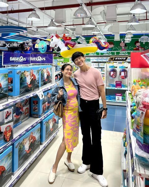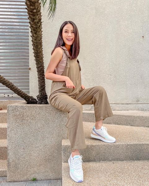 即使起初几个月孕期反应严重,但可以说,像Rodmay Kaneungnij这样的新手妈妈绝不会让自己看起来容颜憔悴,因为大家看到的还是漂漂亮亮的女神。尤其是刚开始的时候,如果不说几乎看不出来她怀孕了,因为她的身材很娇小,还是可以很轻松的穿上日常的衣服。肚子慢慢变大后,风格就变得很可爱,比如Rodmay的背带裤套装,也是非常可爱的宝妈装。