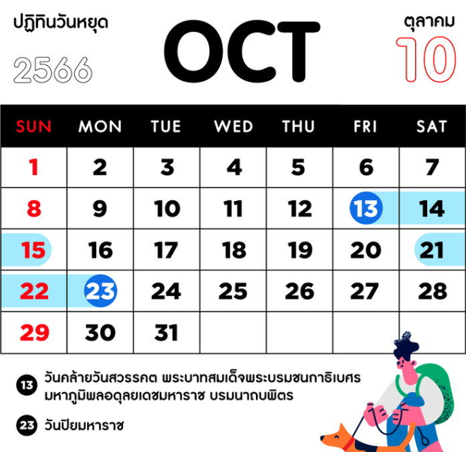 วันหยุดเดือนตุลาคม 2566