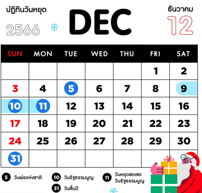 วันหยุดเดือนธันวาคม 2566
