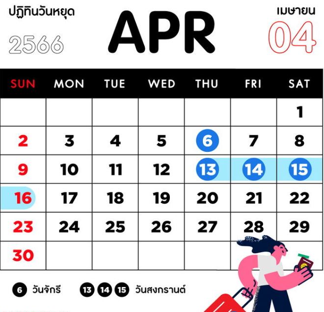วันหยุดเดือนเมษายน 2566