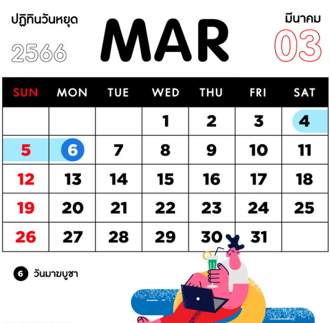 วันหยุดเดือนมีนาคม 2566