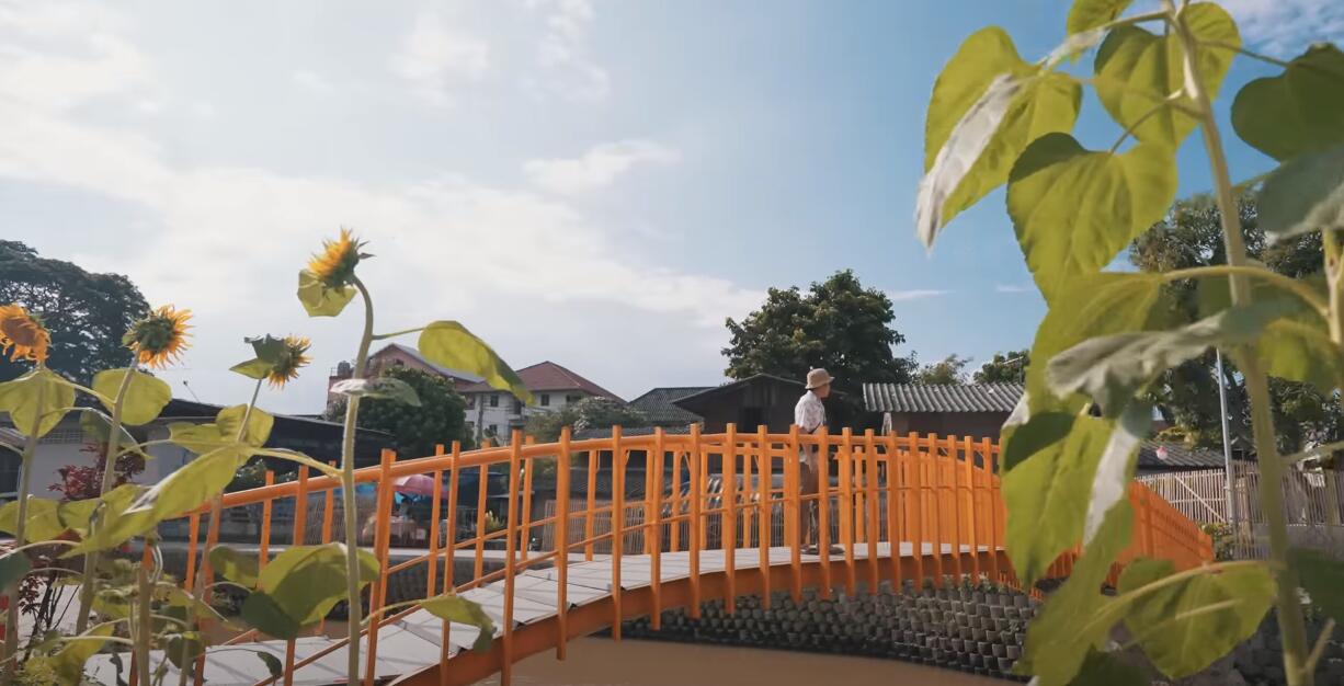 湄卡运河在清迈城区的长康路附近,正成为游客热门的最新旅游打卡地标,人们在这里开心地散步拍照。