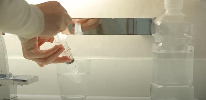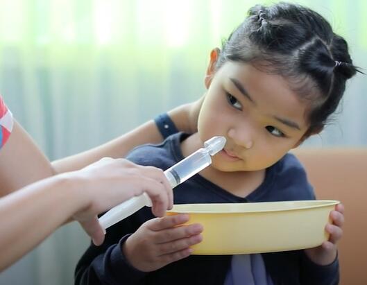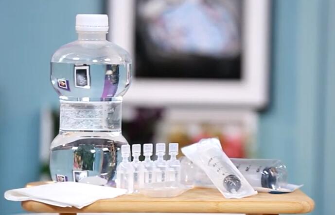 3.用医生给开的注射器,先少量取温盐水,成人用10-15毫升,儿童用5毫升;