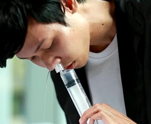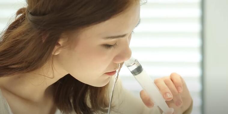 5.把注射器放到鼻腔内,张嘴全力吸气,然后憋气;
