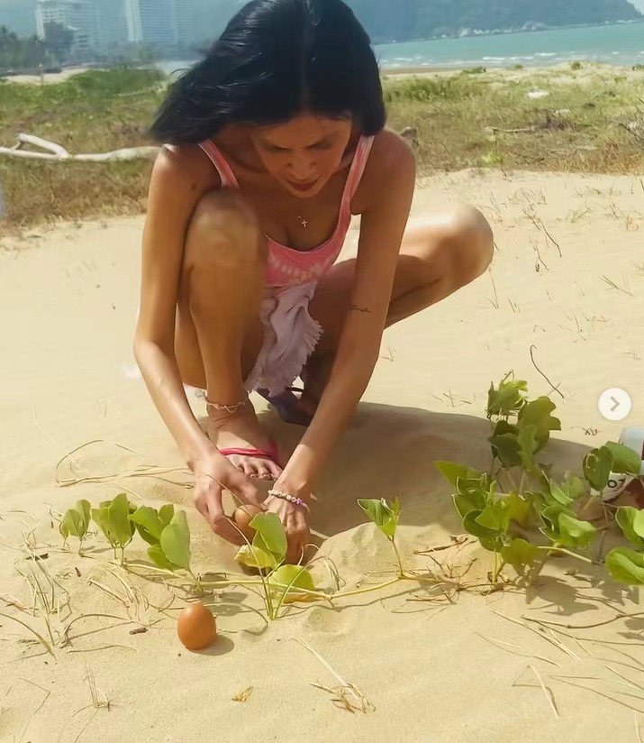 Pin Kejmanee徒手挖沙坑,第一反应就是沙子很烫,阳光很烈,挖好坑将蛋埋在滚烫的沙子中间,然后用椰子和石头在上面做个记号,这样放4个小时后,我们就可以看到泰国的太阳是不是真的能把鸡蛋烤熟?